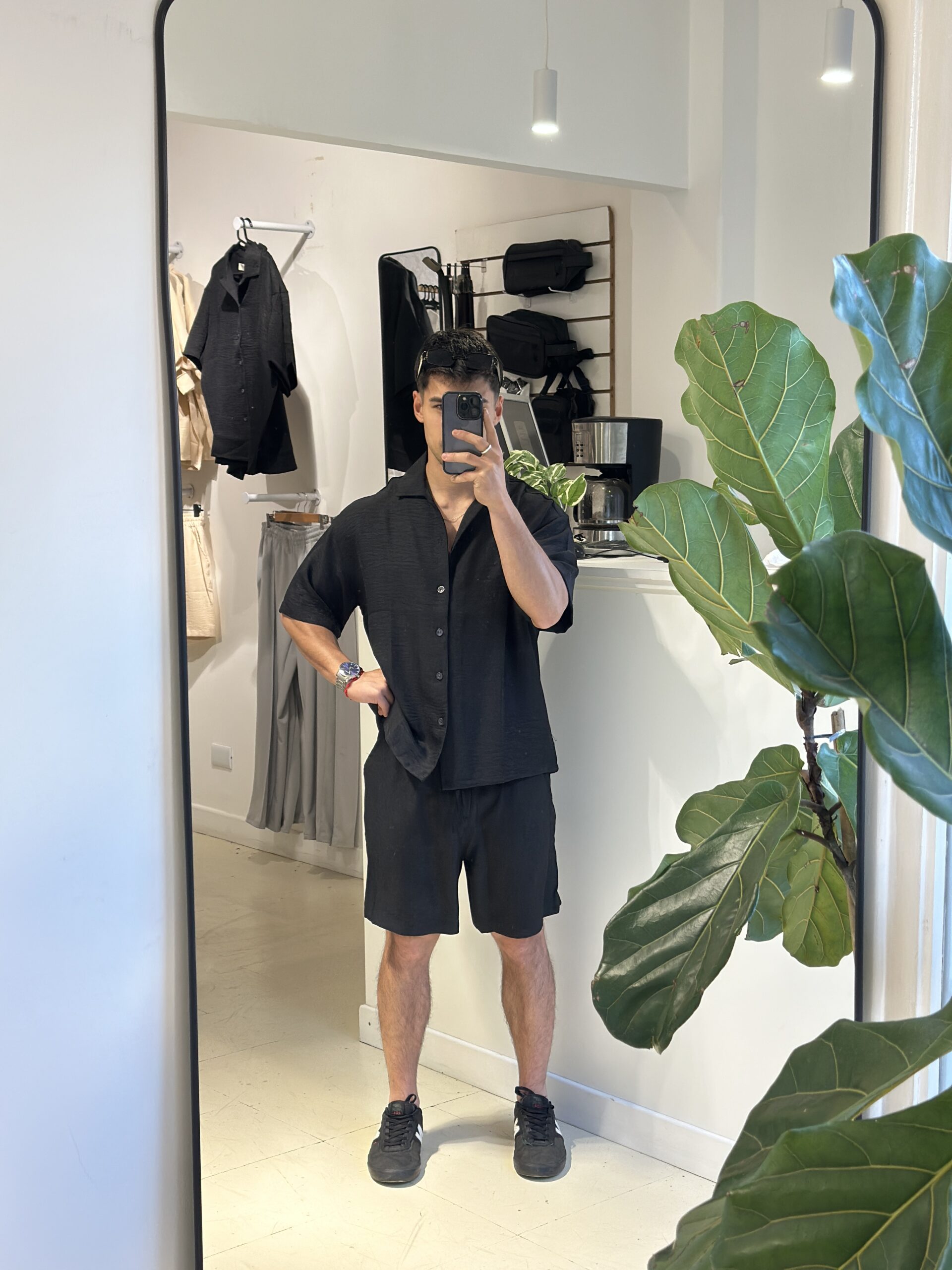 Camisa de lino de fit relajado, con una caída suave y un tacto fresco que se siente desde el primer momento. Líneas limpias, cuello abierto y botones discretos que mantienen el look pulido. Ligera, cómoda y con ese estilo simple que habla por sí solo.
