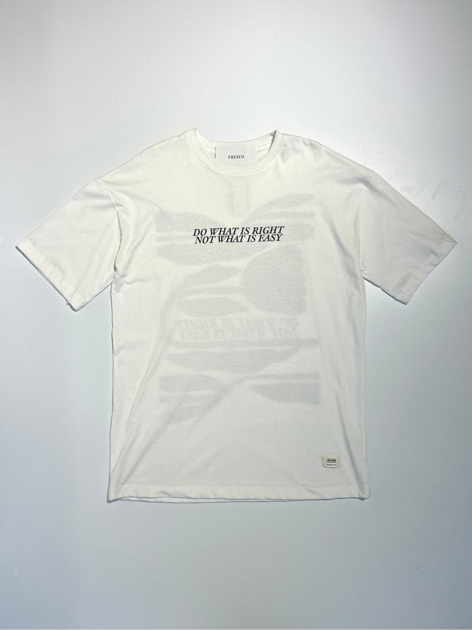 Confeccionada en algodón peinado 16.1, con calce amplio que aporta comodidad y estilo. Presenta estampa frontal con la frase “Do what is right, not what is easy” y diseño gráfico en la espalda con ilustración botánica en colores contrastantes. Una prenda distinta que combina mensaje y estética moderna en un básico versátil.