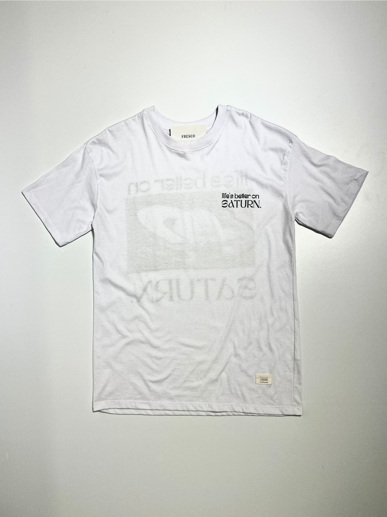 Confeccionada en algodón suave, con calce amplio y cómodo. Su diseño destaca por la estampa en la espalda con la frase “Life’s better on Saturn” acompañada de un gráfico en blanco y negro que aporta un aire cósmico y distintivo. Una prenda moderna y versátil que suma personalidad a cualquier look urbano.